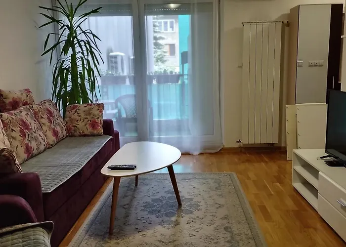 街路の景色を見渡すベッドルーム1室のQuiet Apartment In City Center, Free Private Parking サラエヴォは、サラエヴォのサラエボ醸造博物館から徒歩でたった9分です。 BBI Center数歩の距離に位置するこの43m²のアパートには、リラックスしながら中庭の景色を楽しめるテラスがあります。